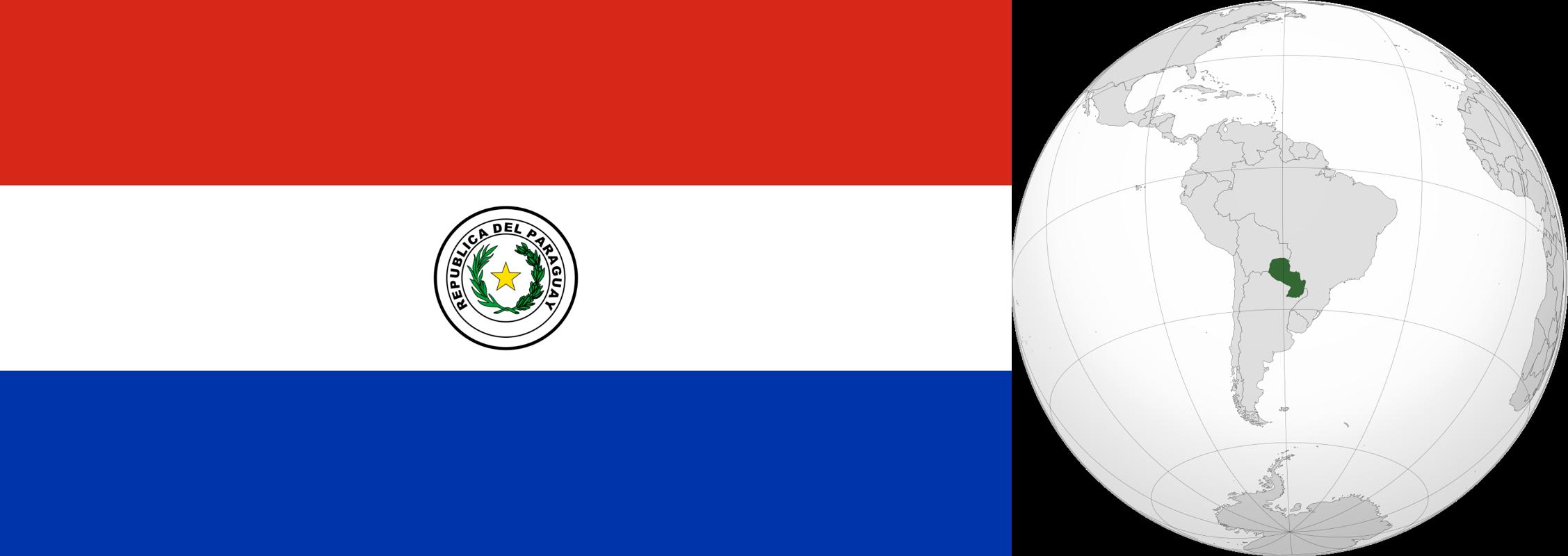 Bandera de Paraguay y ubicación de Paraguay en Sudamérica.