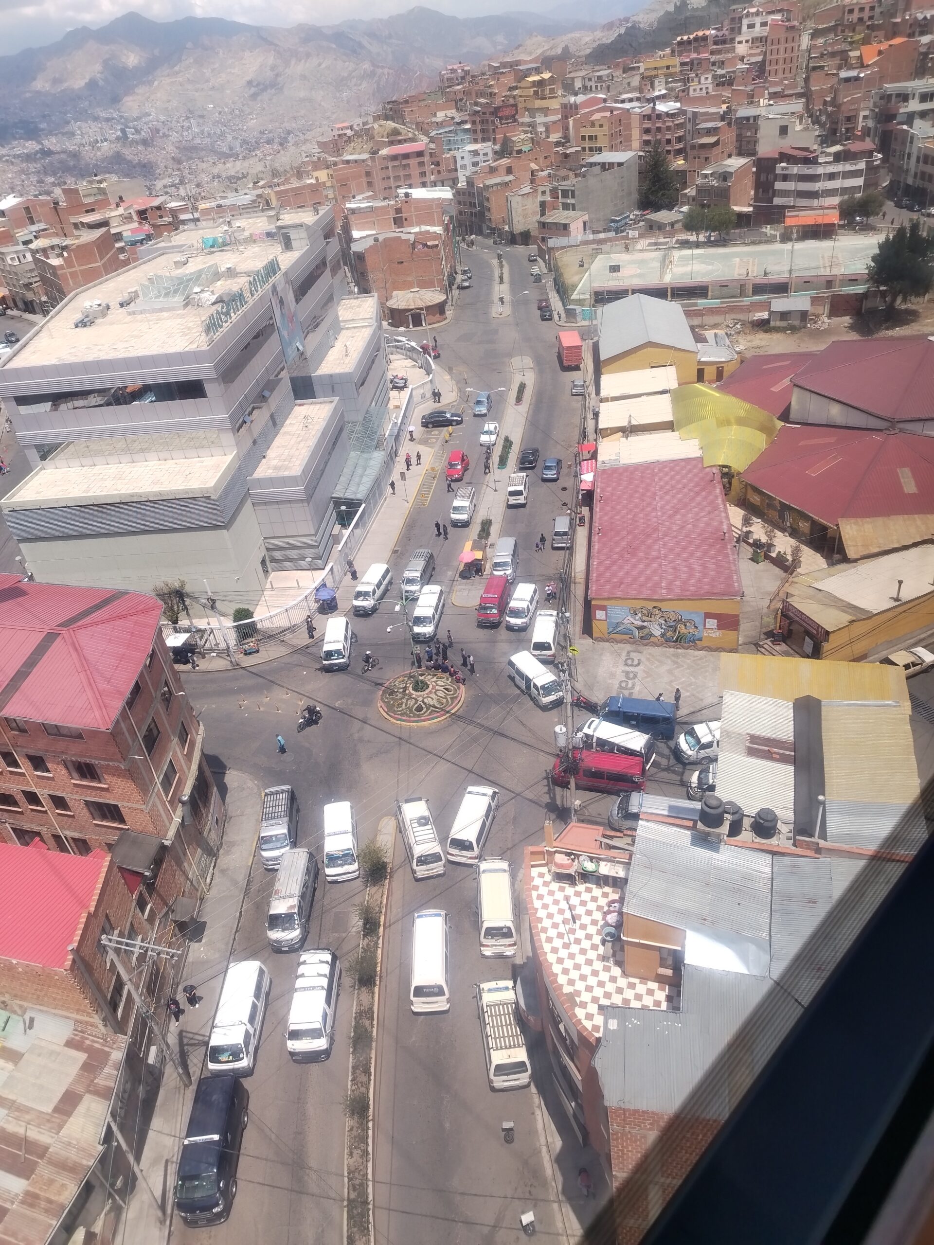 Algunas líneas de teleférico funcionaban y volvimos a subir. Desde el cielo pudimos ver claramente cómo los autobuses bloqueaban las calles. También lo grabamos en fotos y videos. La Paz en modo protesta mostraba su naturaleza compleja pero fuerte.