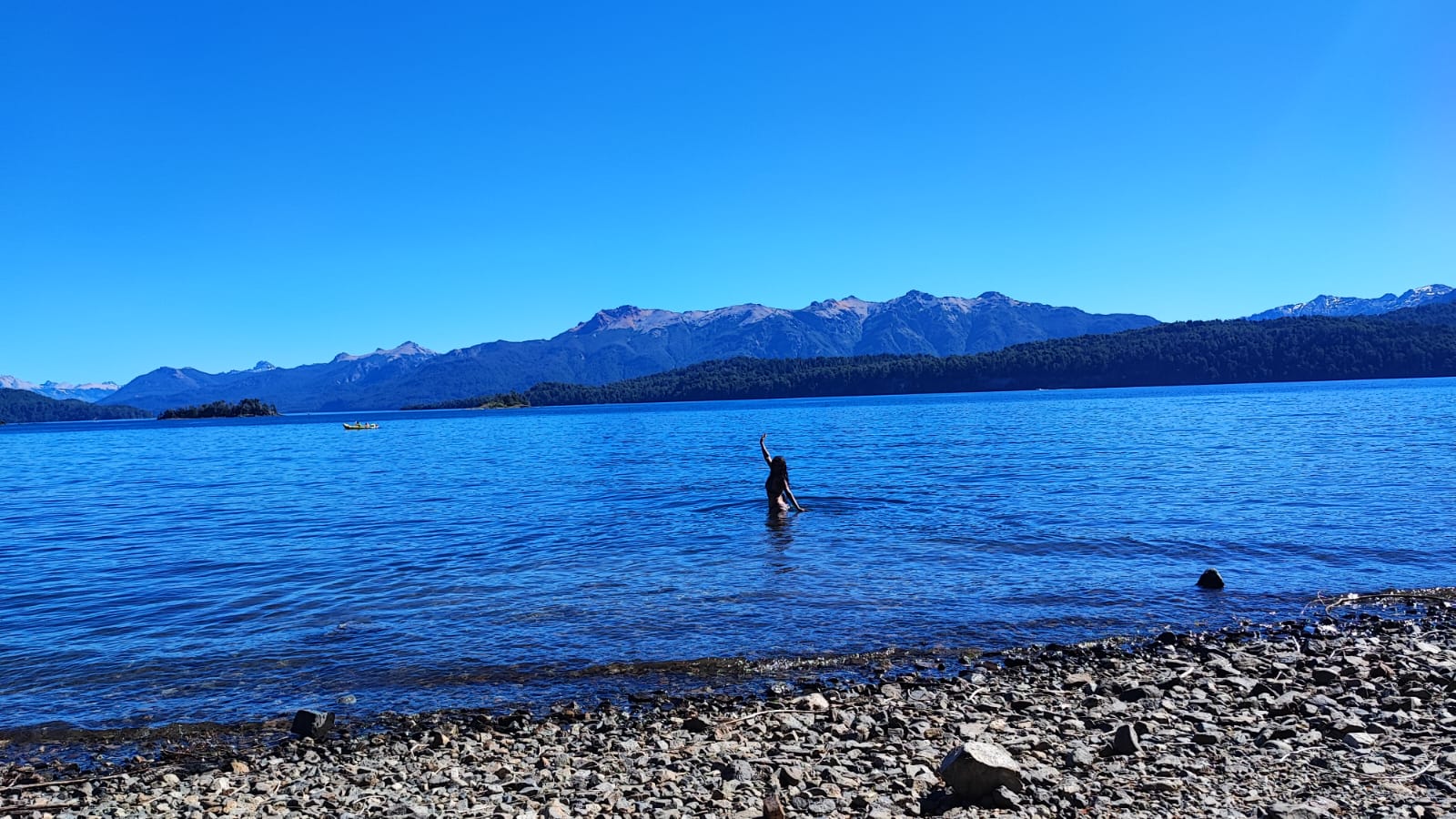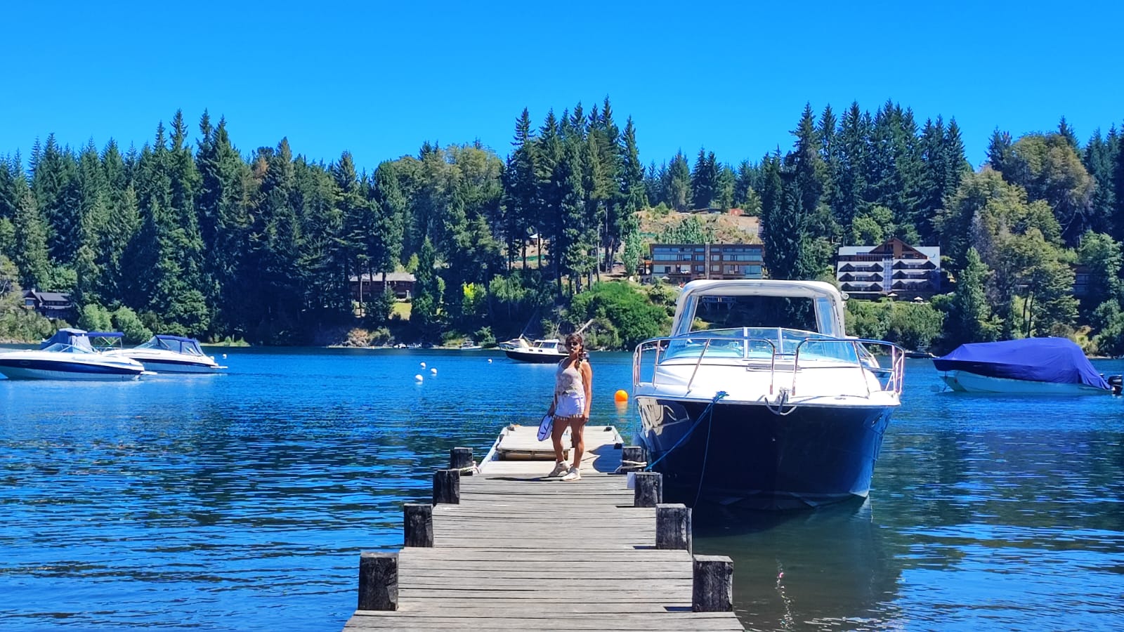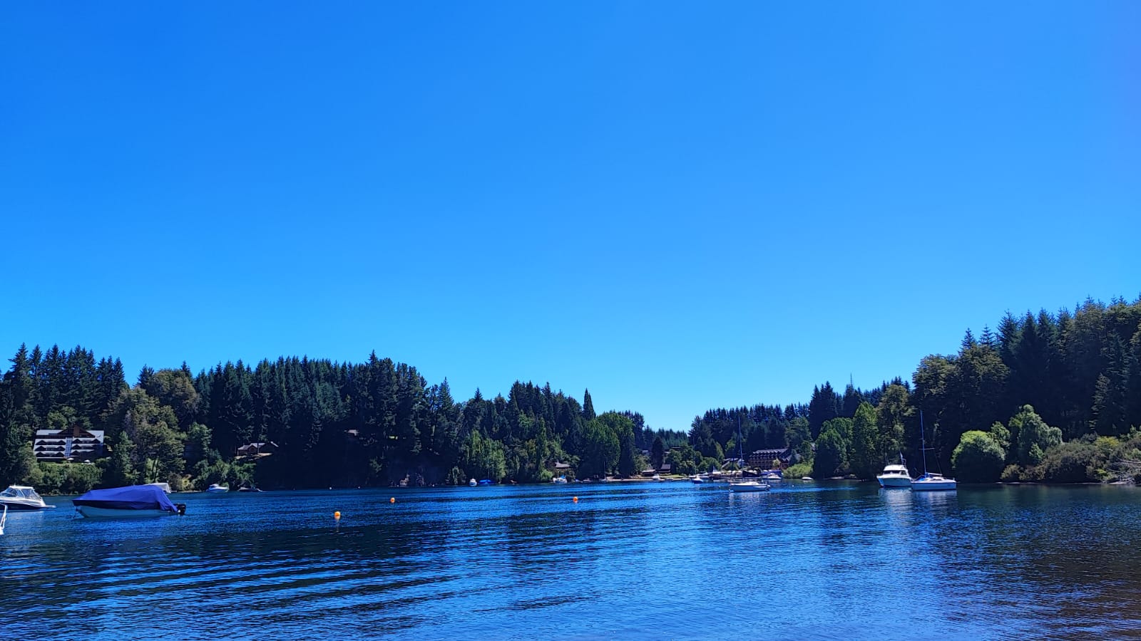 El sol brillaba en lo alto, el lago Nahuel Huapi resplandecía con su azul intenso,