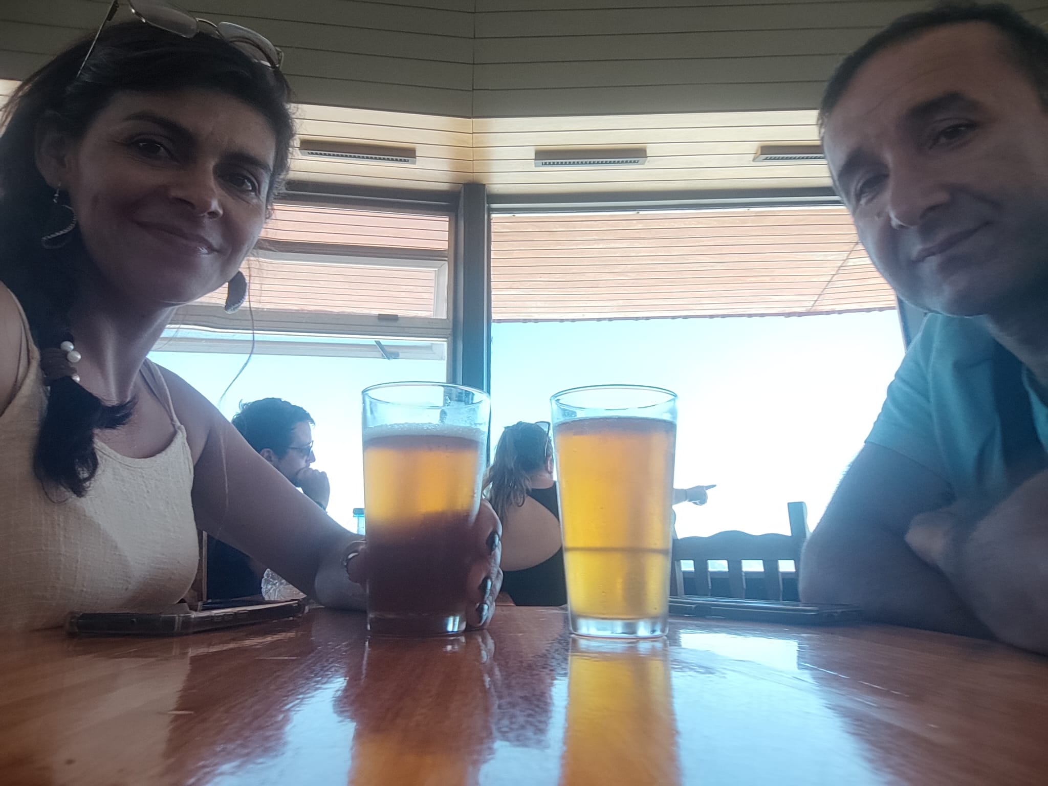 Mientras bebíamos nuestras cervezas frías, escuchábamos las canciones del escenario