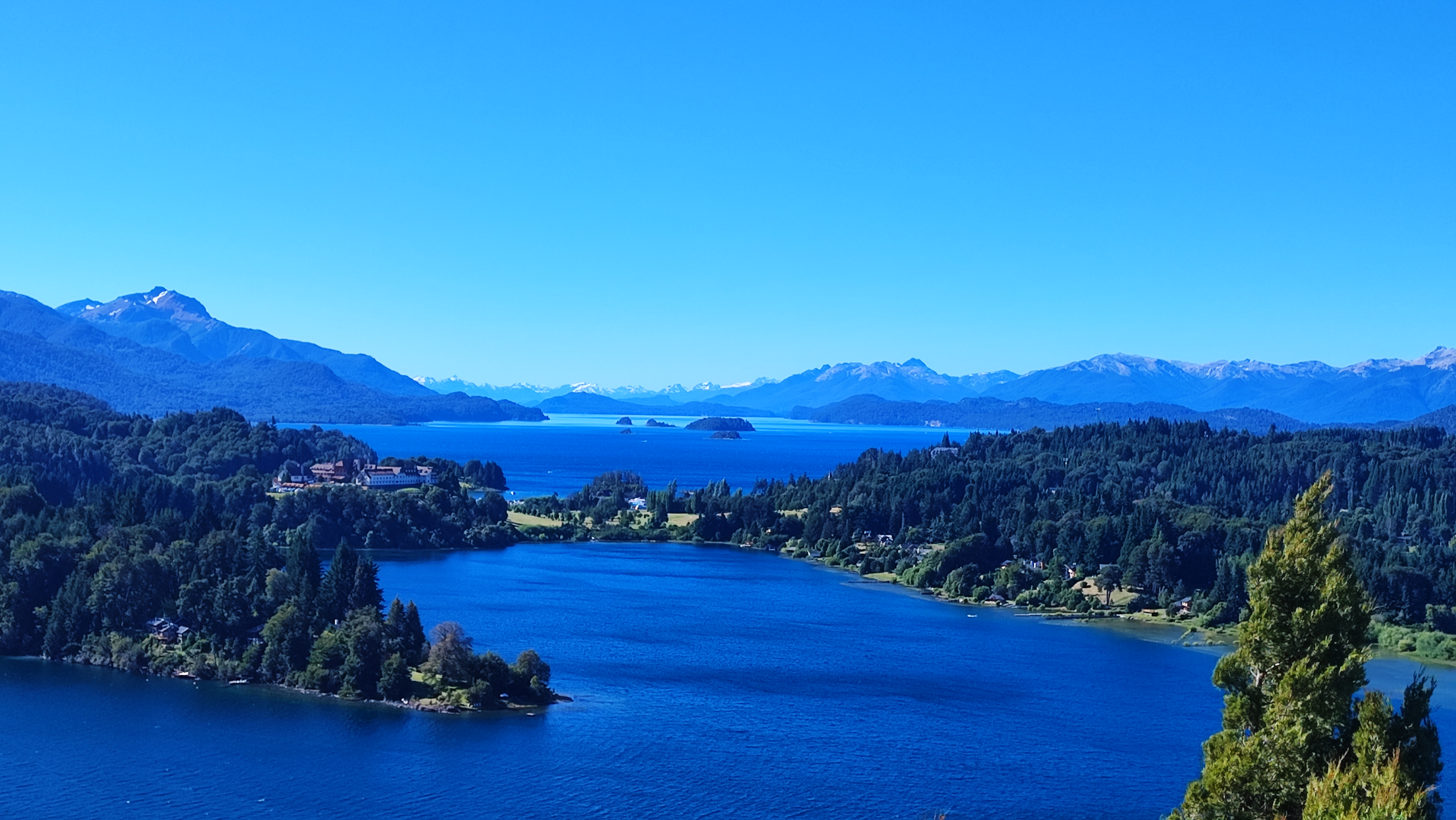 La superficie intensamente azul del Lago Nahuel Huapi y la brisa fresca nos envolvieron desde el primer instante.