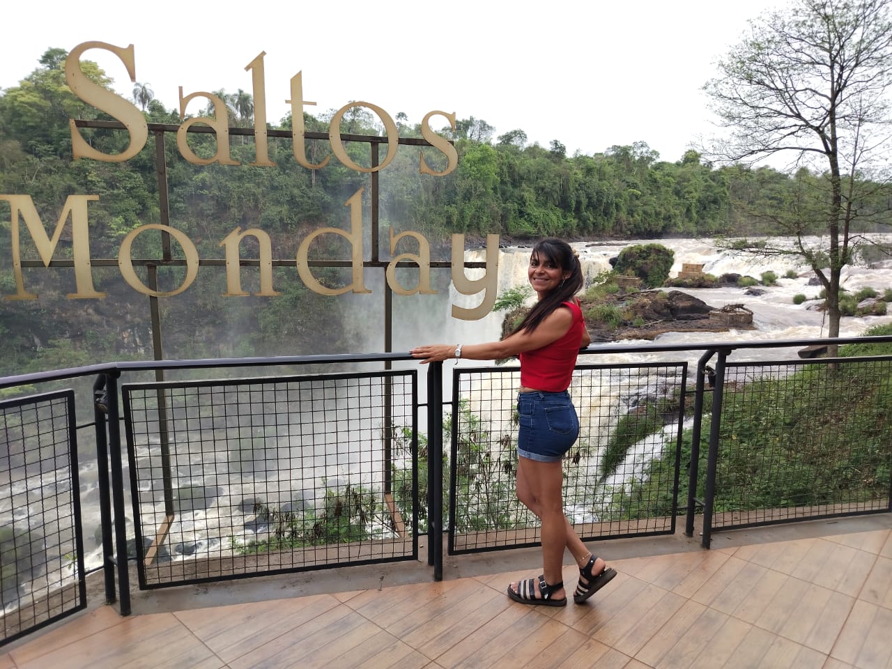 La primera visita fue a uno de los lugares naturales más impresionantes del país: los Saltos del Monday. No era solo una cascada; era un enorme parque lleno de senderos, miradores, pasarelas y un bosque vibrante con cientos de aves.