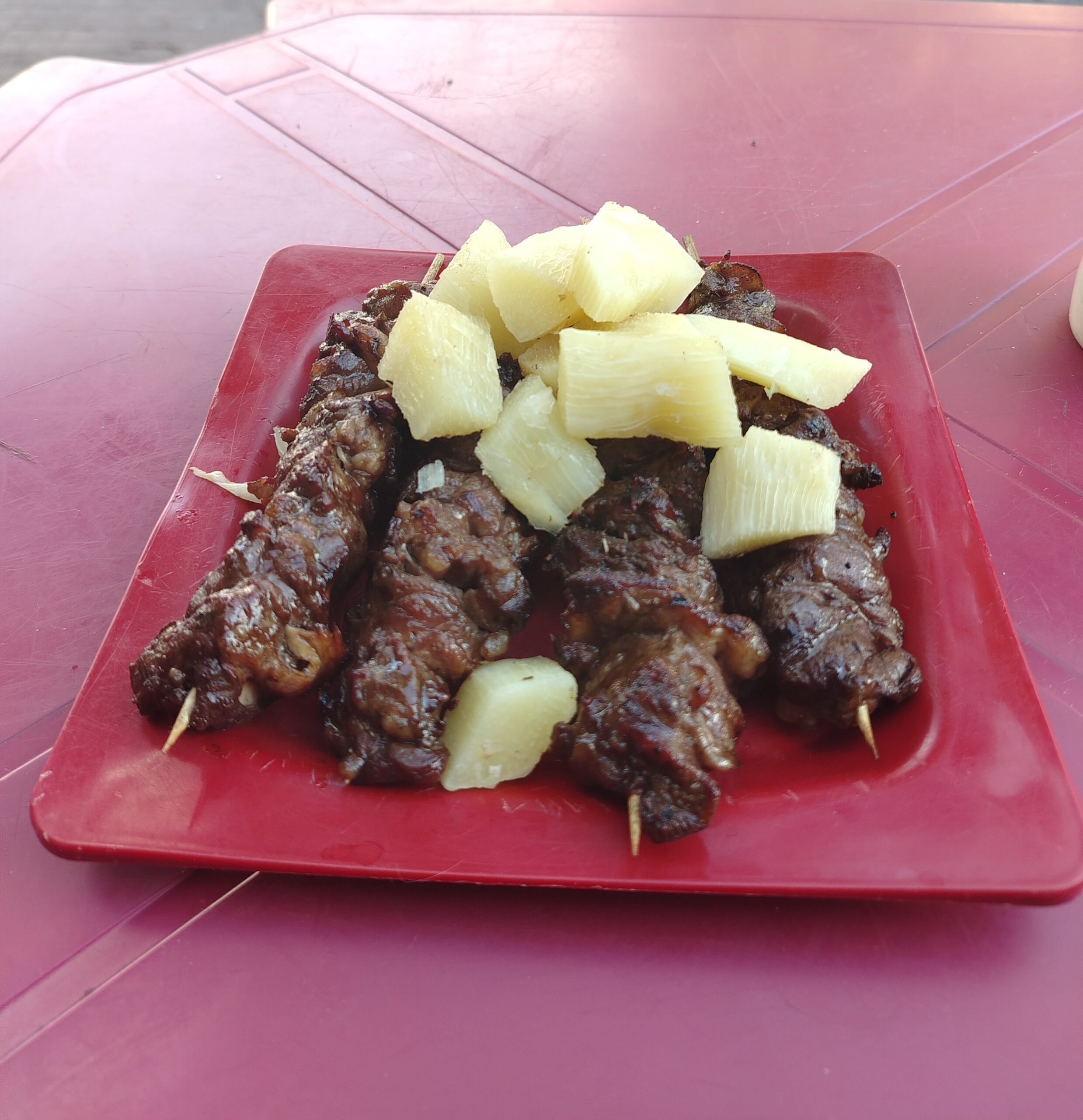Özcan probó por primera vez el famoso asadito, pequeños trozos de carne asados en un pincho, que disfrutó junto a ella.